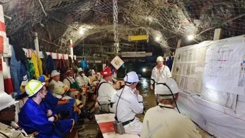 王晉定董事長帶隊調(diào)研奧尼金礦資源 Tau礦10號井1050中段工作班前會
