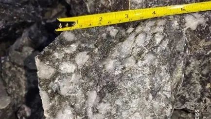 1050中段18線控制的VCR礦體 1050中段18線探獲礦體的代表性礦石